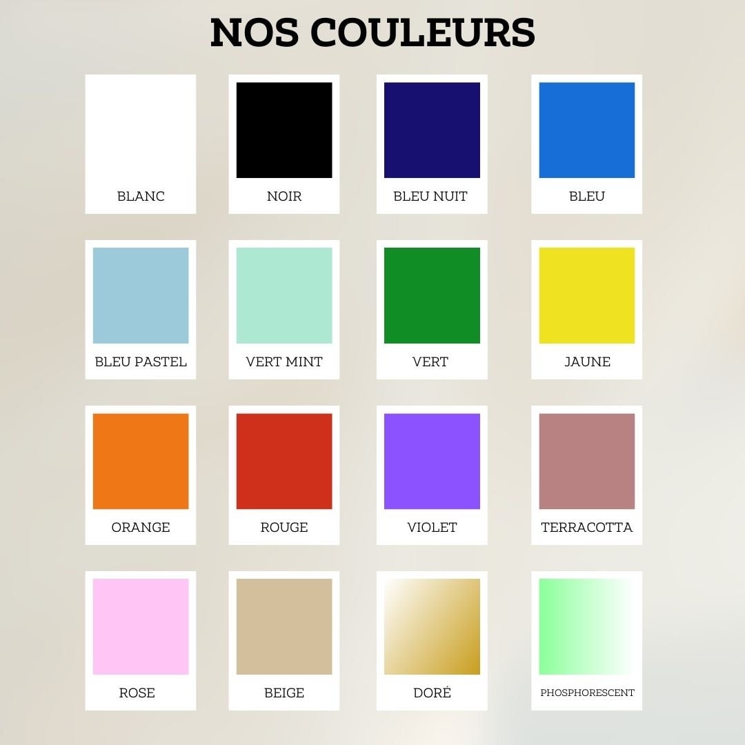 Afin de passer commande il vous suffira de nous communiquer le prénom ou mot que vous souhaitez intégrer. Plusieurs coloris sont disponibles.