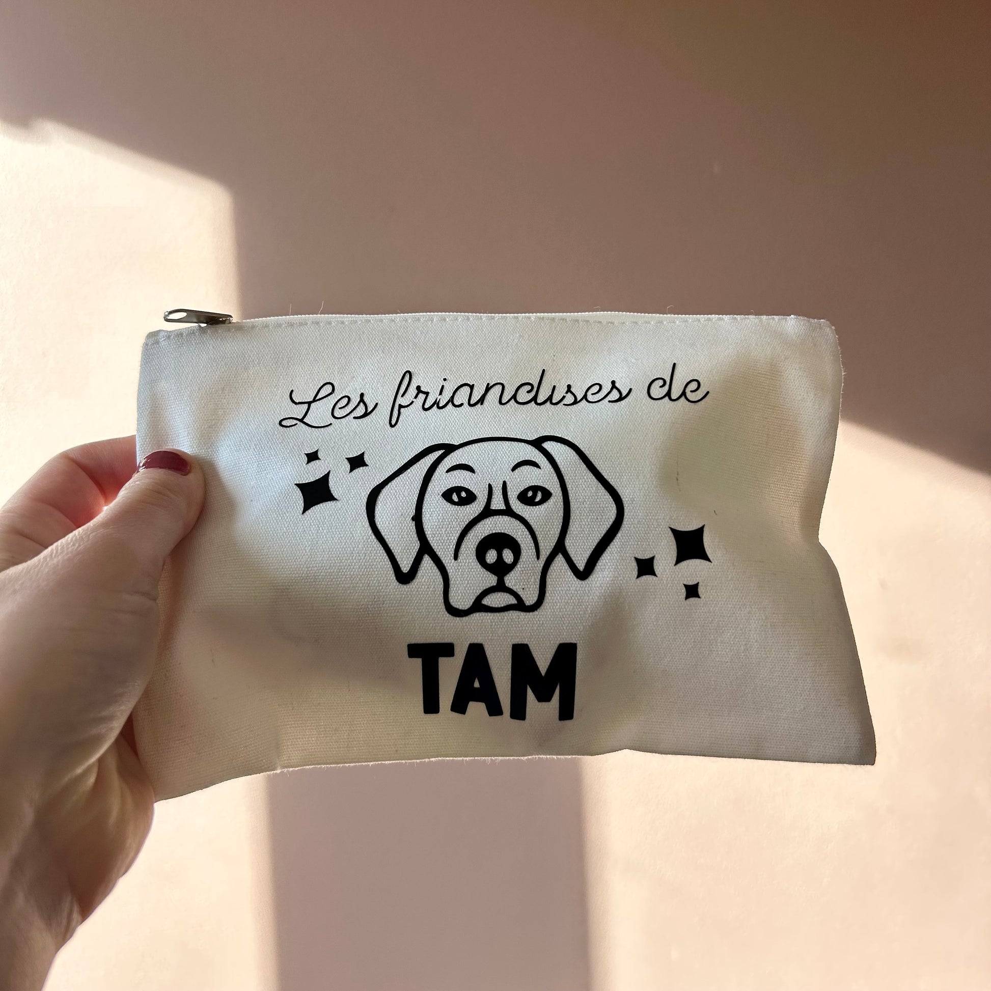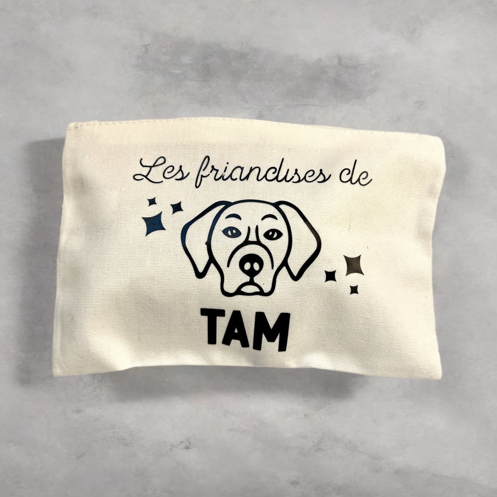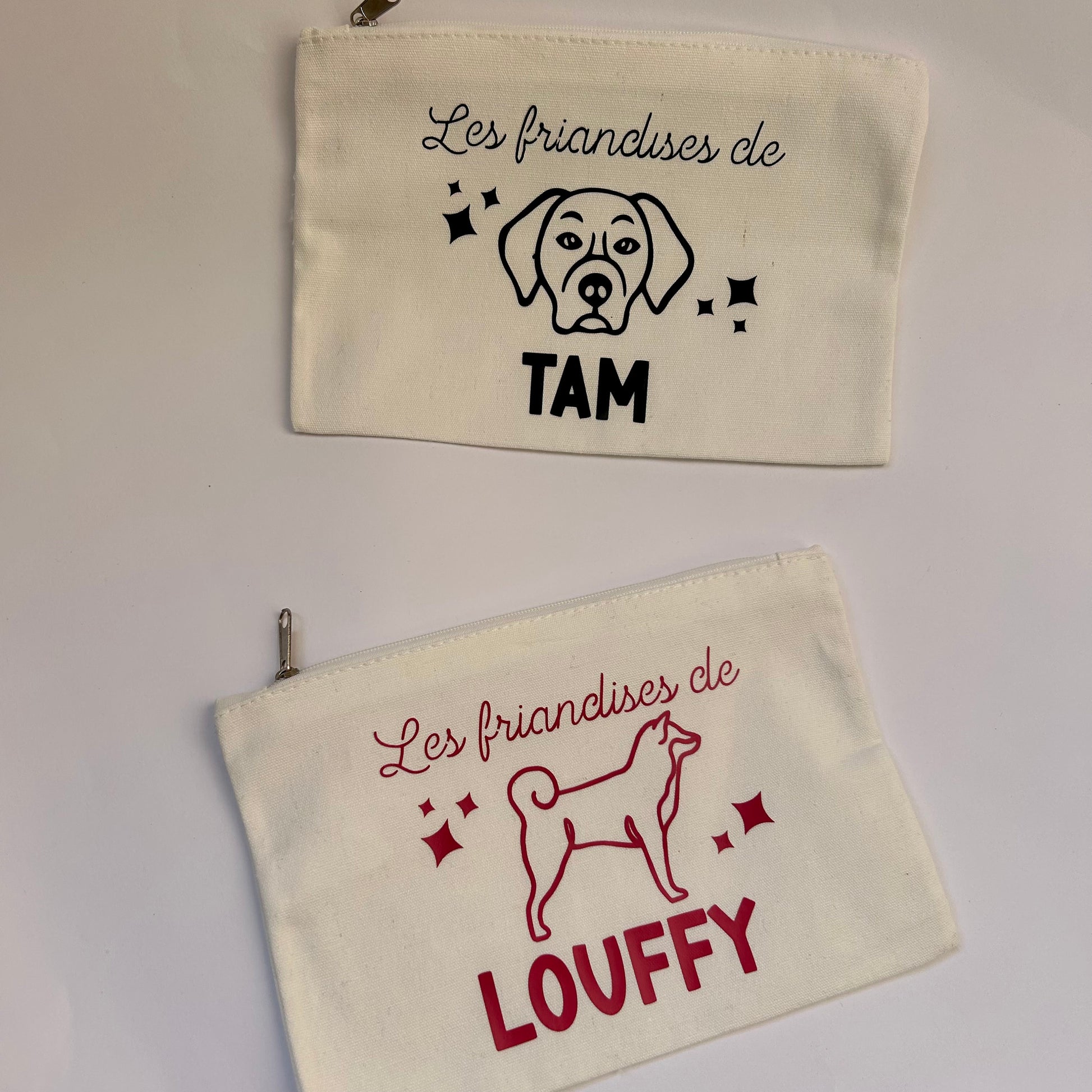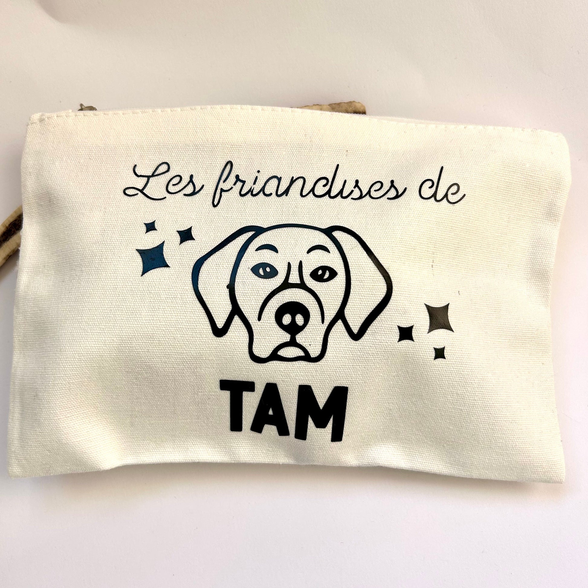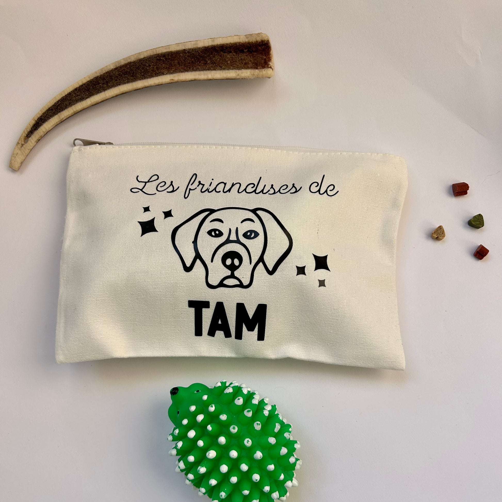 Nous réalisons pour vous et votre chien cette pochette trousse personnalisée avec le prénom de votre toutou.