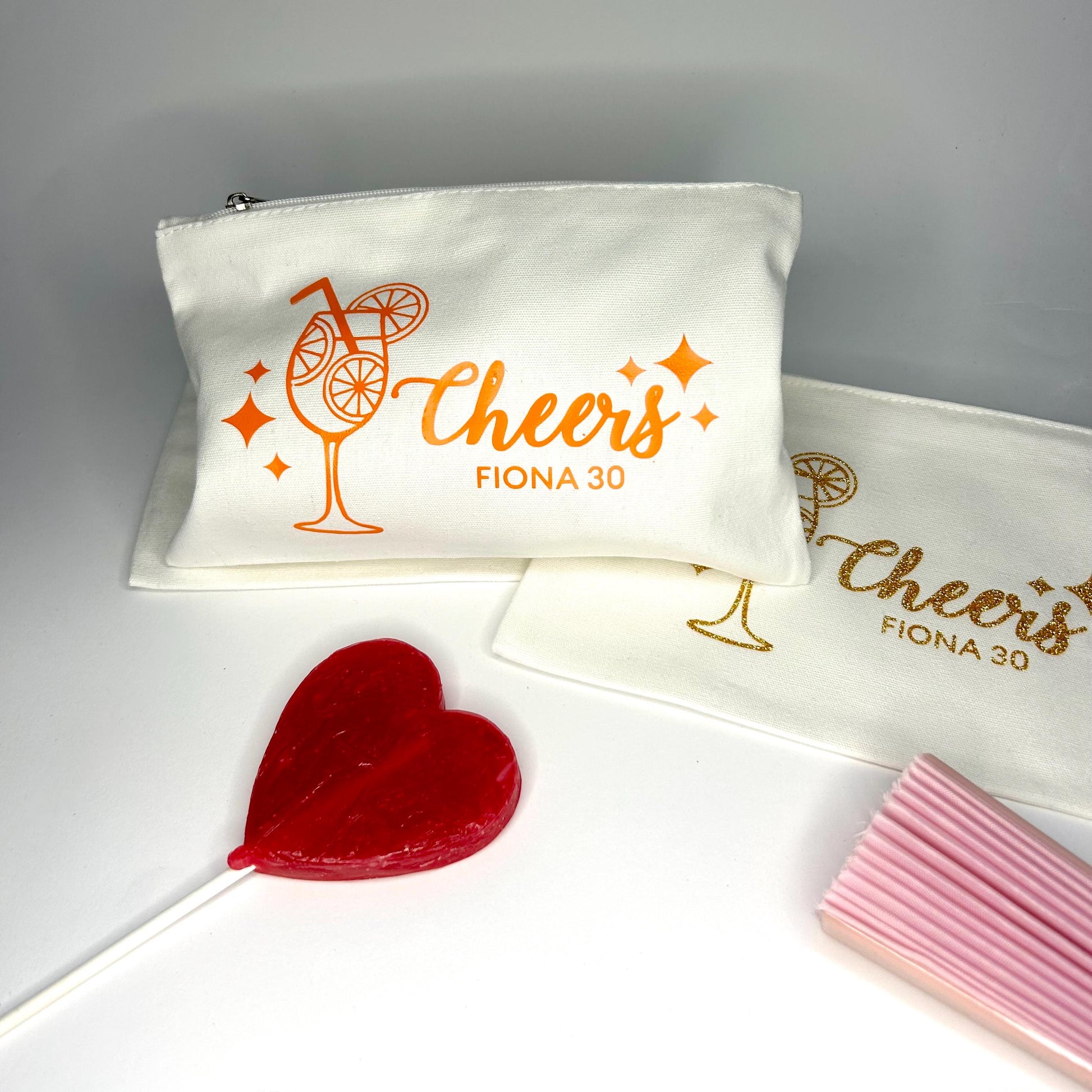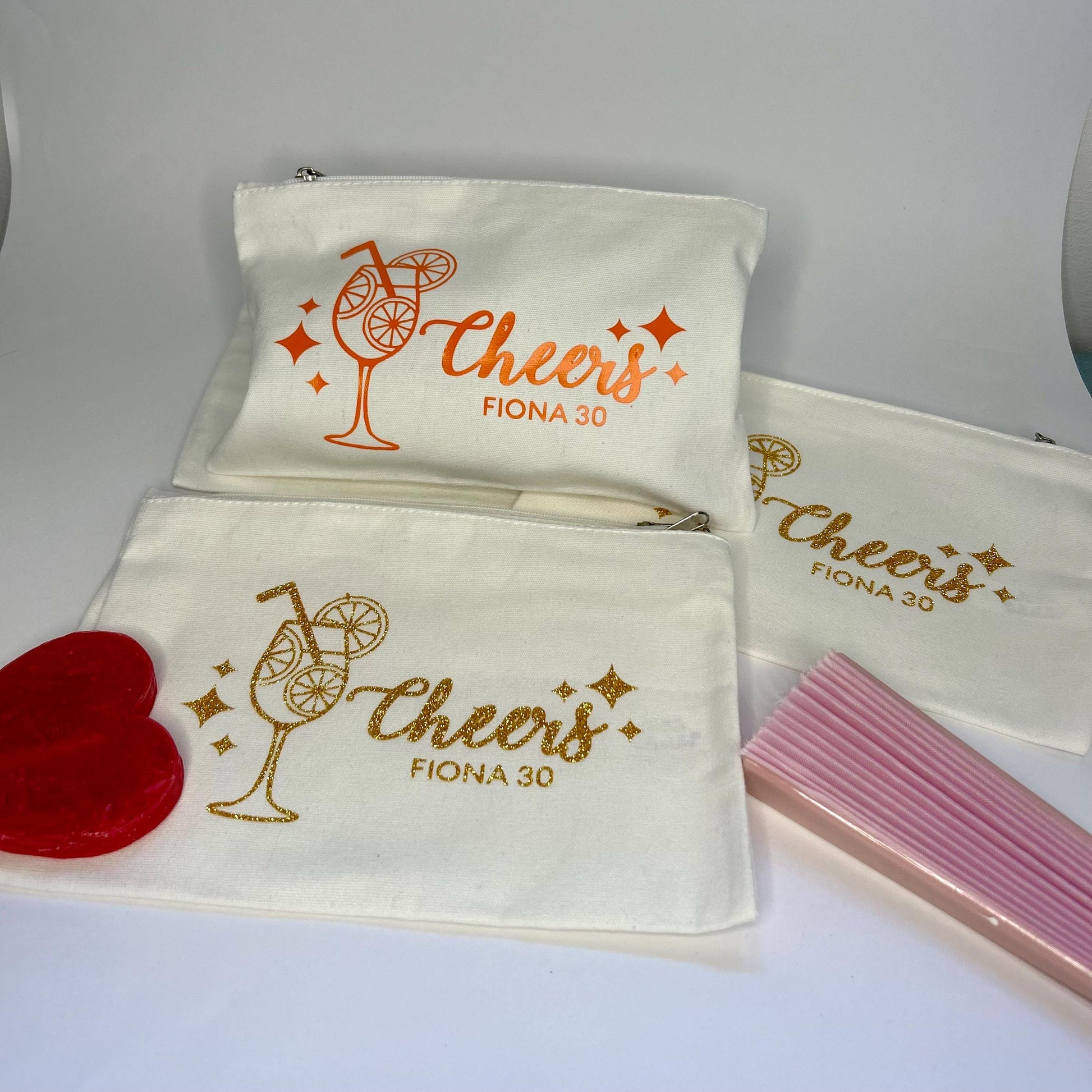 pochette à personnaliser theme spritz, cadeau pour invité d’anniversaire, décoration personnalisée pour votre anniversaire, EVJF, ou mariage