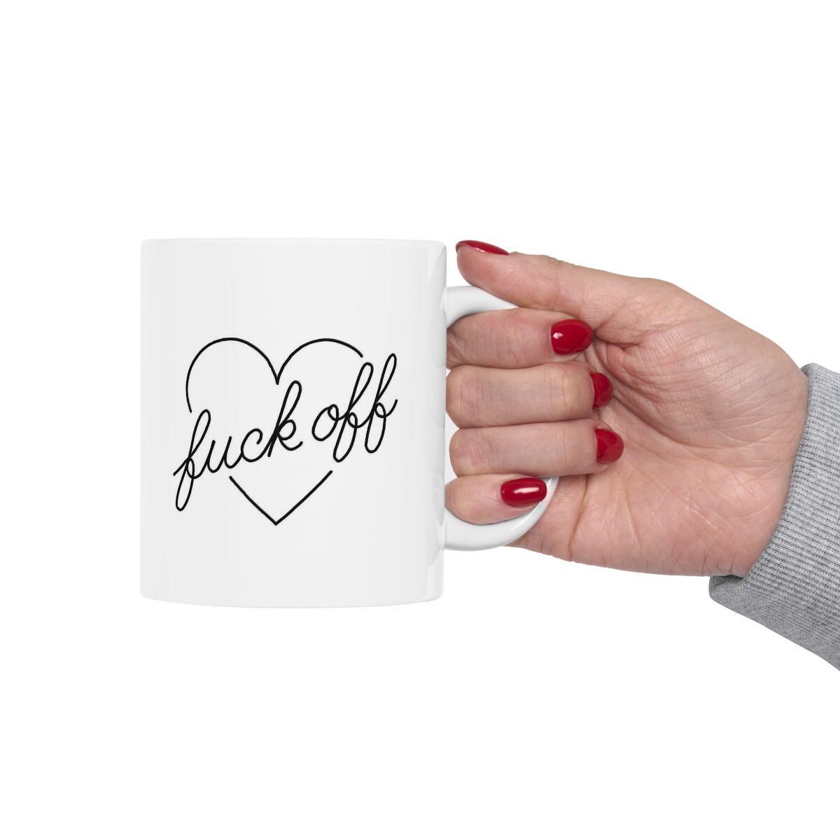 Tasse en céramique avec cœur "Fuck Off" – Design audacieux et original pour le bureau tasse humoristique